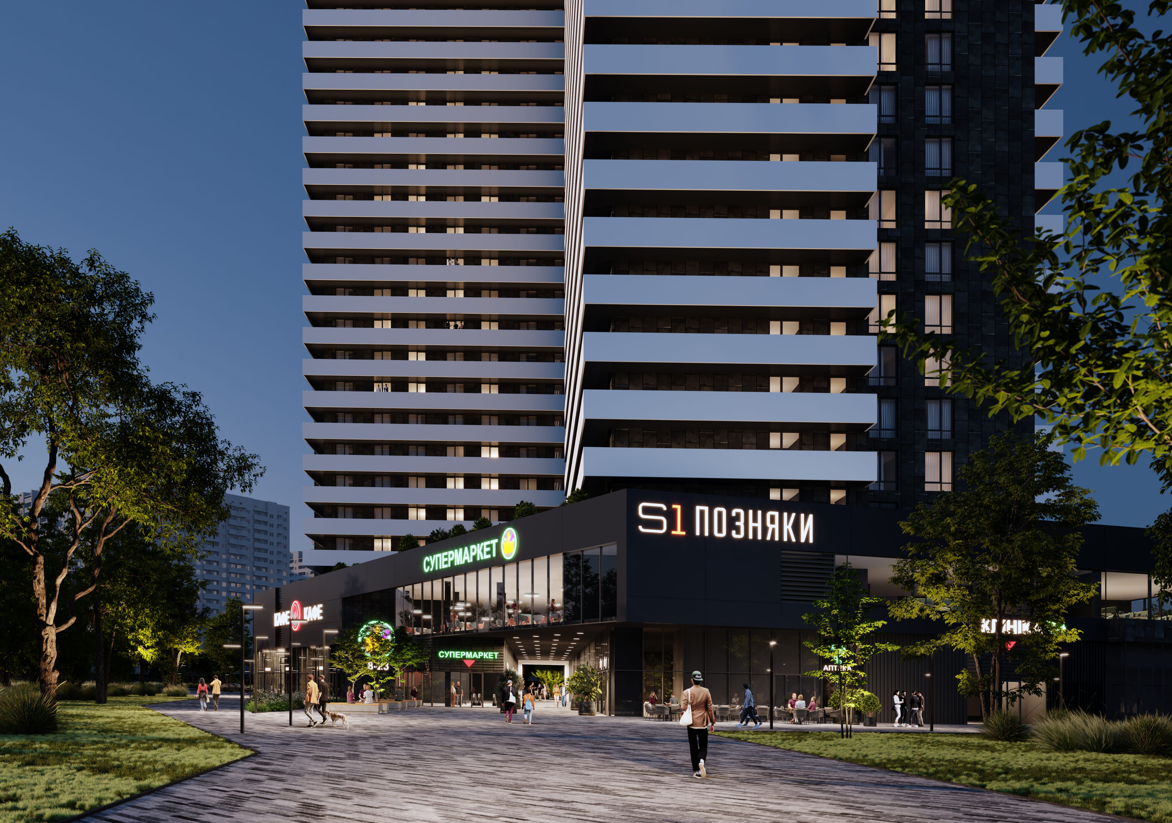 S1 Позняки розташований у топовій локації — поруч із метро та зонами відпочинку.